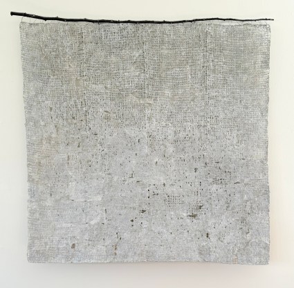 26 x 30 inches, woven wire, paper and acrylic medium, 2023