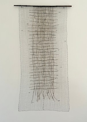 21 x 40 inches, wrapped dogbane fiber, woven wire, 2025